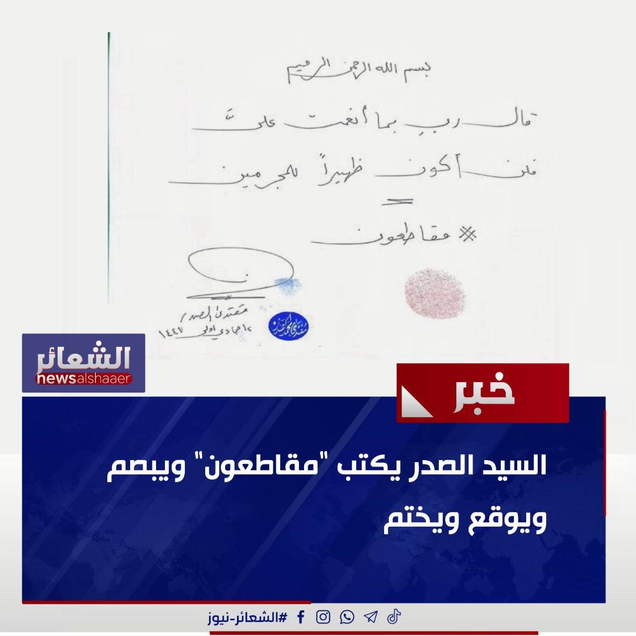 السيد الصدر يكتب “مقاطعون” ويبصم ويوقع ويختم