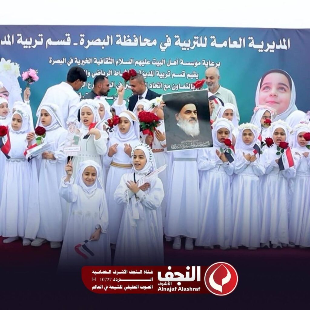 استناداً لتوجيهات سماحة المرجع الديني الأعلى آية الله العظمى السيد صادق الحسيني الشيرازي دام ظله تزامناً مع ذكرى ولادة السيدة فاطمة الزهراء (ع) إقامة حفل تكليف للفتيات البالغات السن الشرعي للحجاب في محافظة البصرة