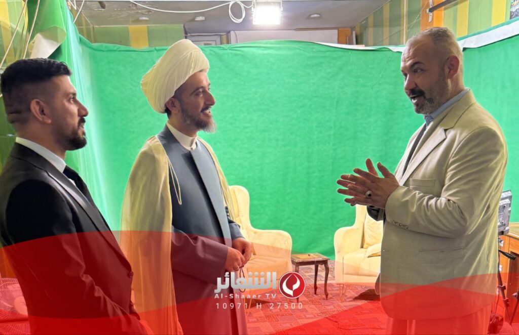 ممثل المرجعية سماحة الشيخ مهدي معاش يزور مقر شبكة قنوات الوعي الشيرازي الفضائية العالمية في النجف الاشرف برفقة المدير العام لمجموعة الشعائر العالمية الحاج نصير الشحماني